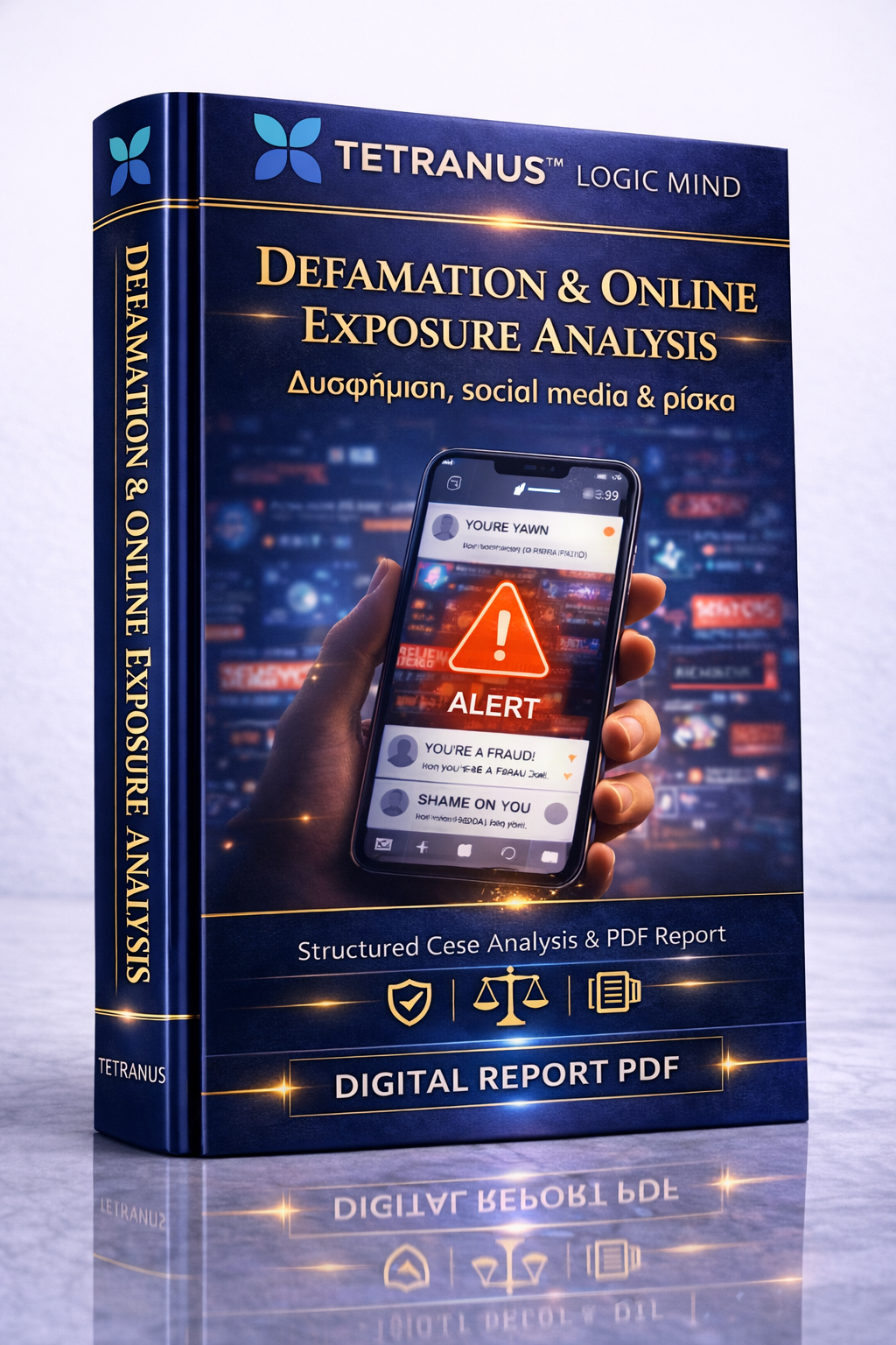 Ανάλυση Δυσφήμισης & Online Έκθεσης βάσει της Δικής σας Περίπτωσης (Defamation & Online Exposure Analysis – PDF Report)