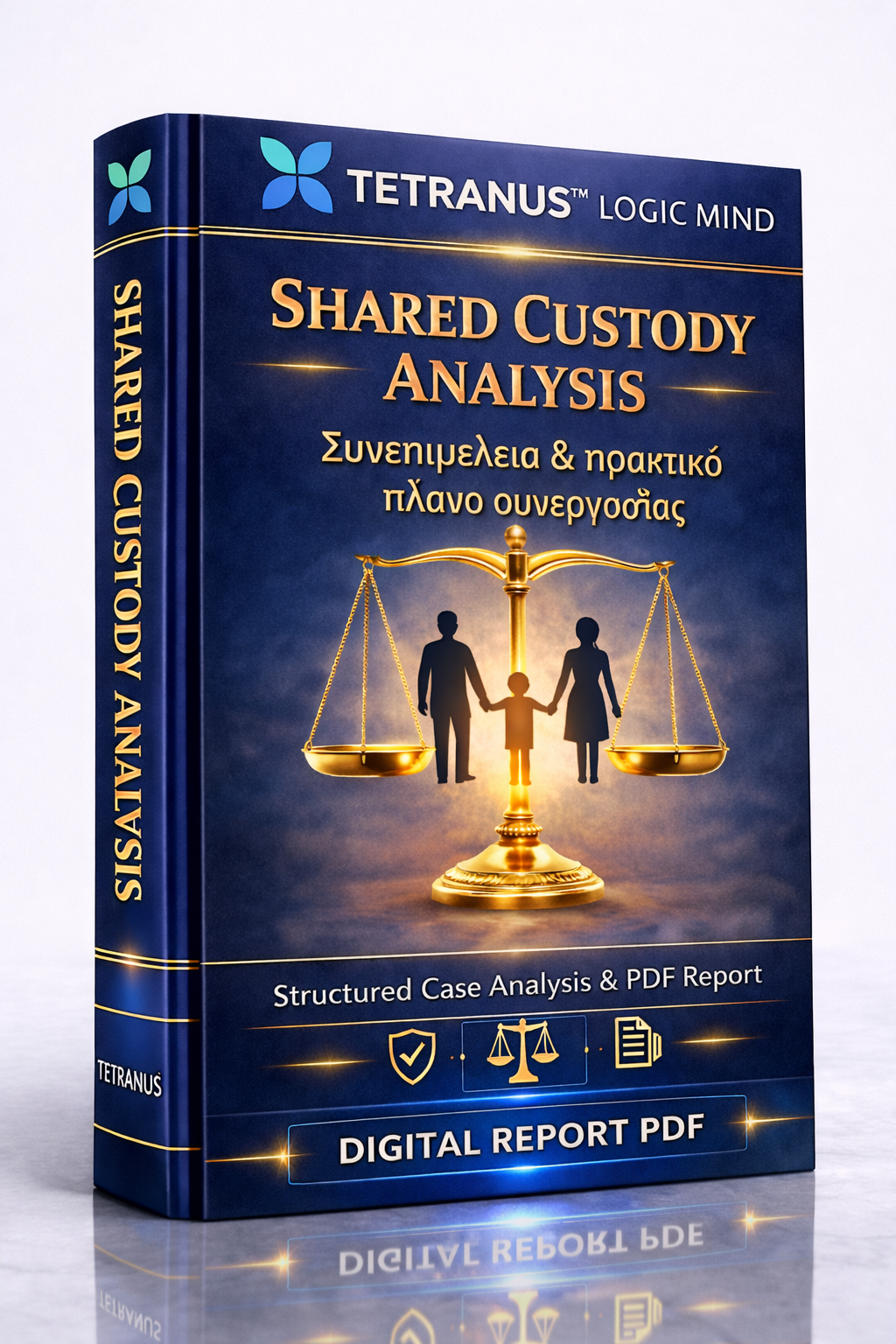Ανάλυση Συνεπιμέλειας & Πλάνου Συνεργασίας βάσει της Δικής σας Περίπτωσης (Shared Custody Analysis – PDF Report)